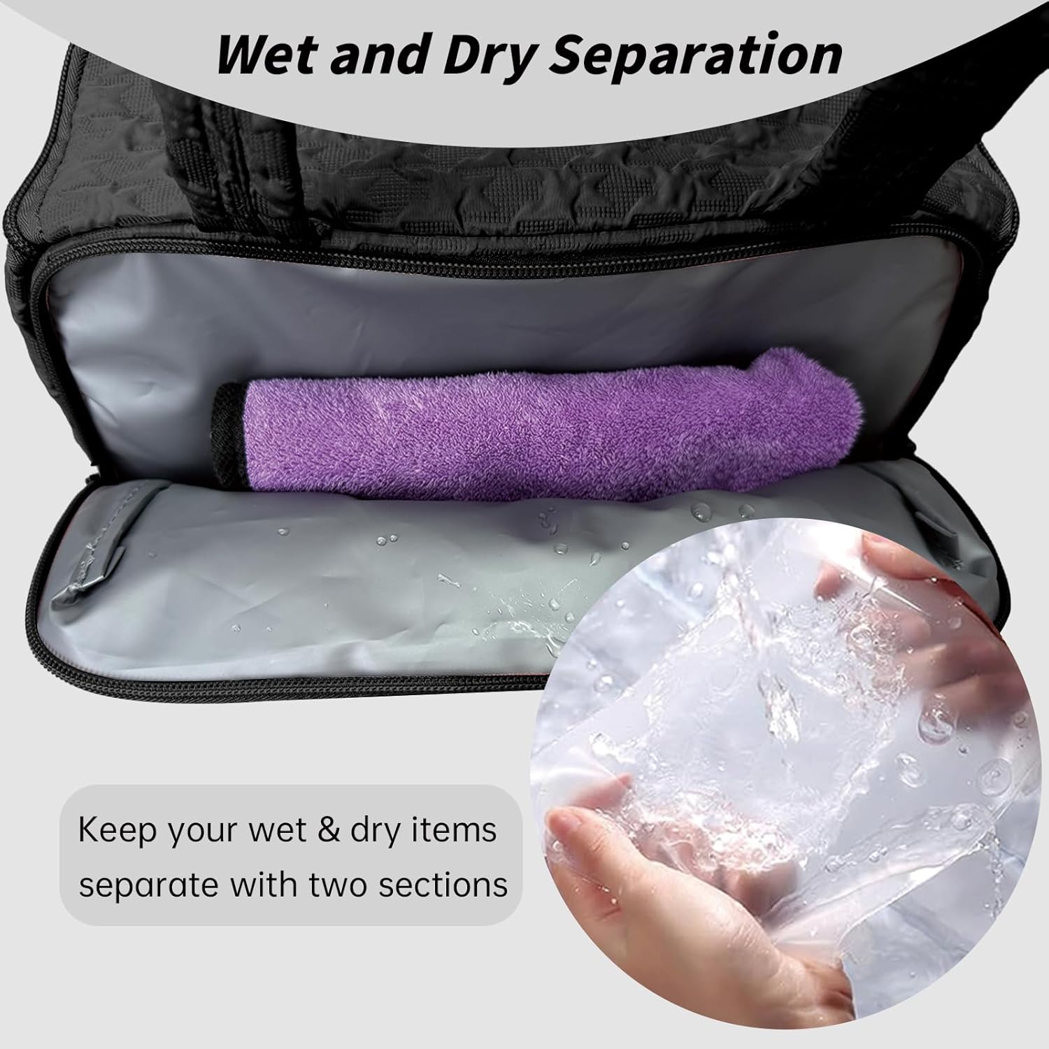 - 【Separate Compartment】This travel toiletry bag is equipped with 3 separate zippered compartments,the front pocket isdesigned for makeup enthusiasts to store various sizes of makeup brushes, eyeshadow palettes. The rear water-resistant pocket can store wet and dry items separately, you can put towels and toiletries.