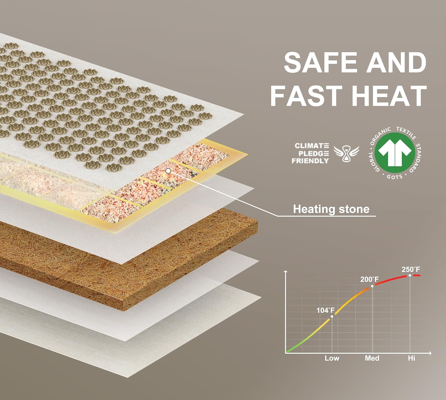 - Effortless Heating Convenience: simply heat the volcanic stones and insert them directly into the acupressure mat for instant warmth—no complicated setup. enjoy spa-like therapy at home in minutes, perfect for busy lifestyles seeking quick relief.