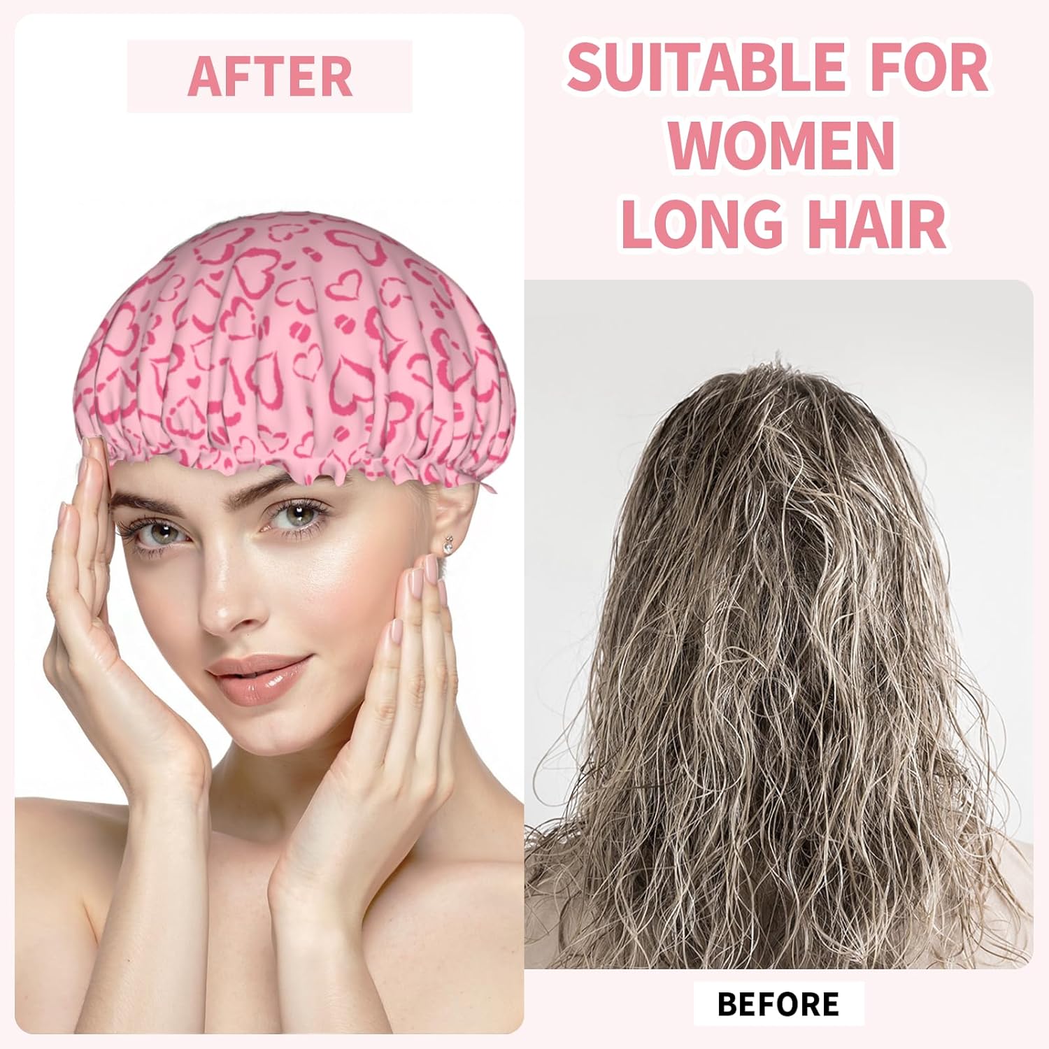 - Versatile Application: Our reusable pink heart leopard print shower caps can be used for showering, cooking, household cleaning, and spa sessions, keeping your hair dry and protecting it from dust and cooking fumes. This pink heart leopard print bath hair hat also fit for makeup, face washing, and applying facial mask, due to it suitable for all hair types-long, curly, voluminous or short, adding more convenience and beauty to your daily life.