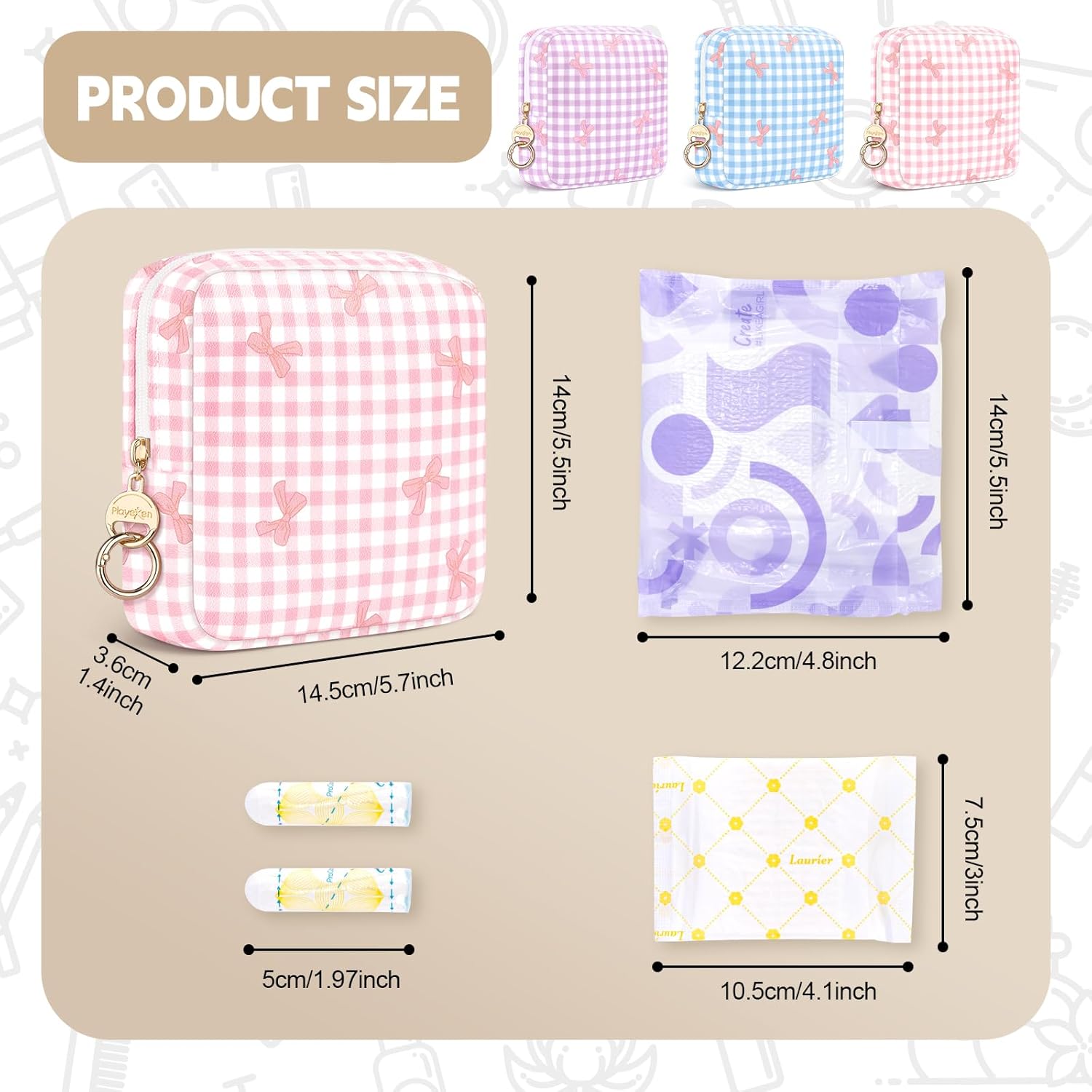 - 【Cute & Colorful Colors】Tampon holder is available in your choice of colorful color and sizes, checkered and bow tie styles gives it a distinctive cute look. Pad storage bag make of canvas fabric, soft, comfortable to touch, easy to clean, no fade
