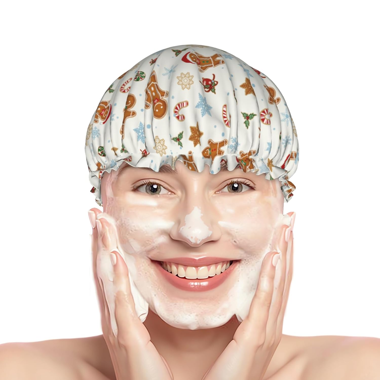 - Versatile Application: Our reusable winter Christmas shower caps can be used for showering, cooking, household cleaning, and spa sessions, keeping your hair dry and protecting it from dust and cooking fumes. This winter Christmas gingerbread man and snowflakes bath hair hat also fit for makeup, face washing, and applying facial mask, due to it suitable for all hair types-long, curly, voluminous or short, adding more convenience and beauty to your daily life.