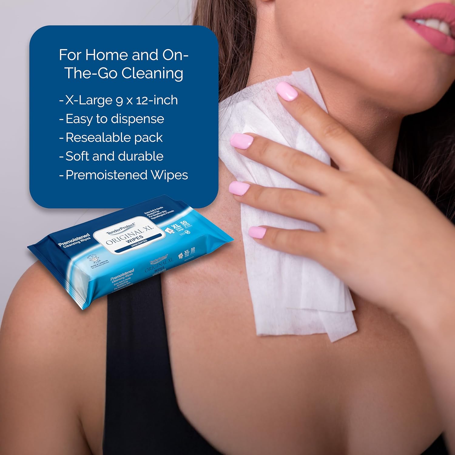 TenderProtect® Original XL Premium Adult Wipes (200 Ct), Extra-Large 9"x12" Wet Wipes with Aloe, Wash Cloths for Babies & Elderly, Incontinence, Hands & Body Cleaning
