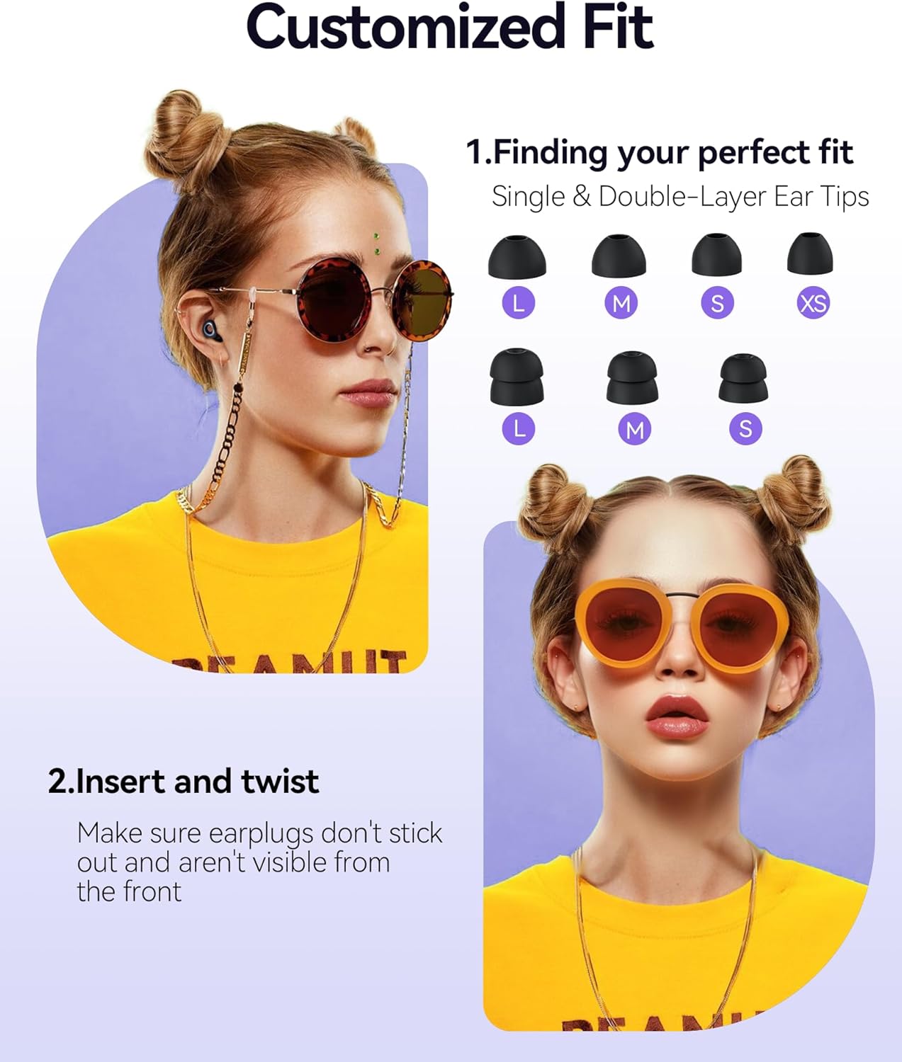 Ear Plugs for Sleeping, 50dB Noise Cancelling Ear Plug with 7 Pairs of Dual Single Layer Tips Reusable Ear Plugs for Noise Reduction, Soft Silicone Earplug for Concert, Snoring, Motorcycle Black