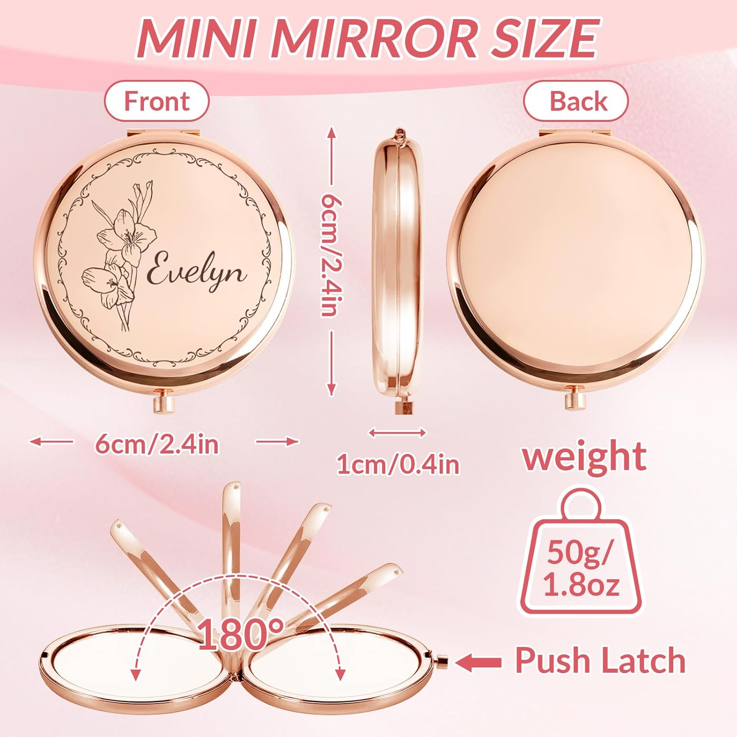 - 【Custom Compact Mirror 】Custom compact mirror with name, initials, or special text engraving makes a unique keepsake. Available in gold, silver, and rose gold, this stylish mini mirror is designed as meaningful personalized women gifts.
