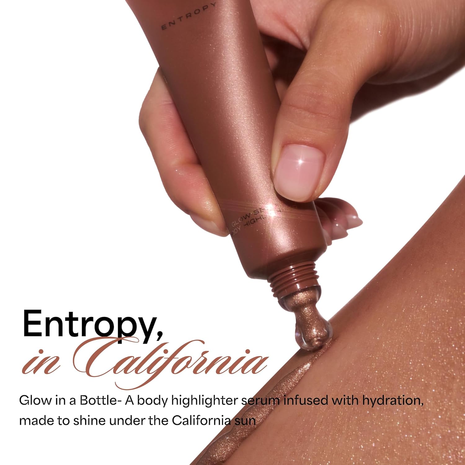 - JUICY, SUN-KISSED GLOW FOR BODY AND FACE: A water-rich serum highlighter with 75% moisture, melting into skin for a soft-lit, luminous finish—just like a little California sunshine on your skin.