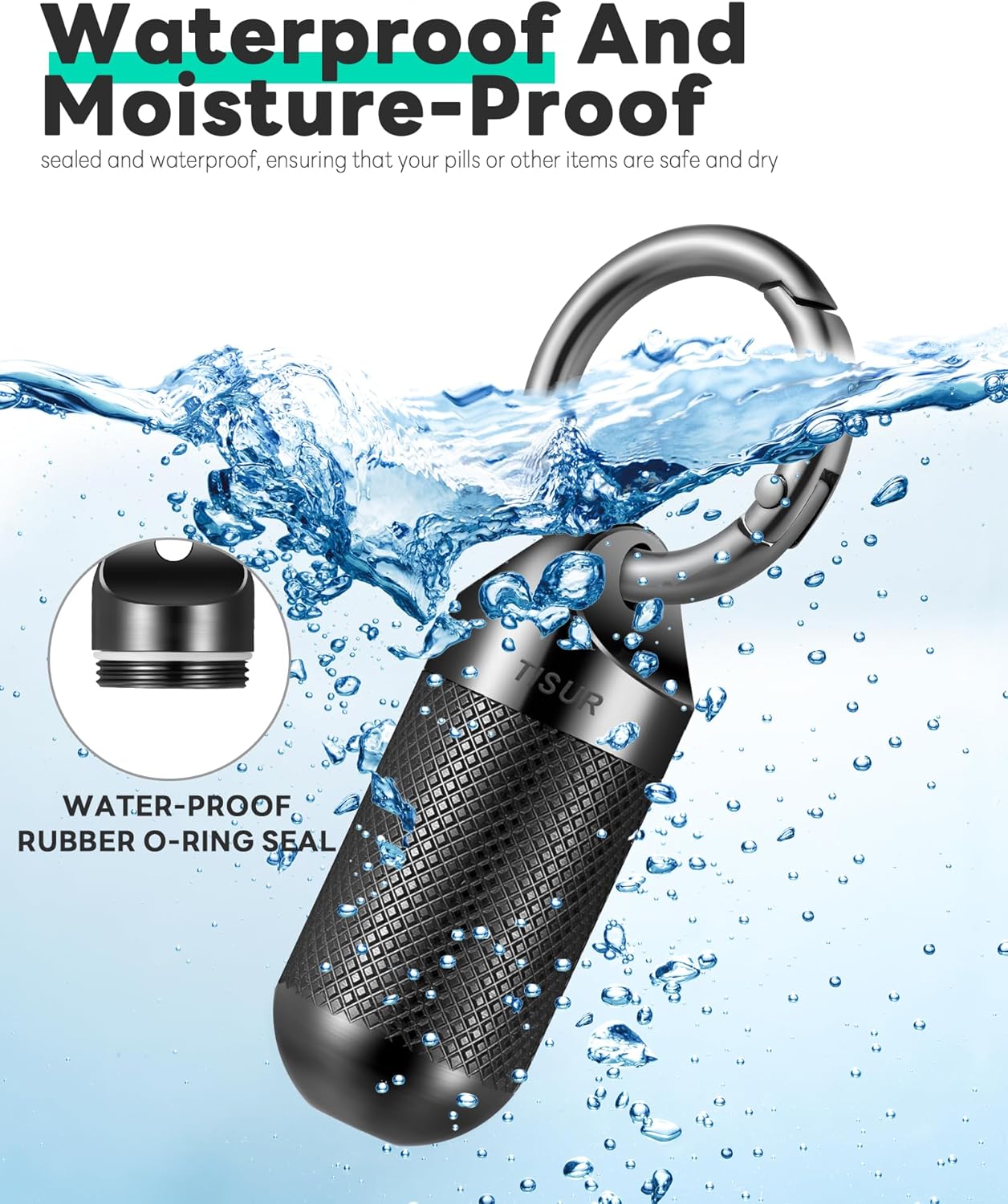 - Waterproof Pill Container: The small metal pill case has a rubber O-ring seal made it airtight and watertight enough to keeps your pills inside safe and dry when you are on vacation, trip, travel, camping or any outdoor activity.