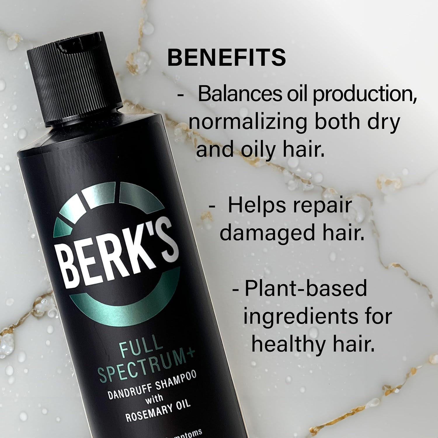 Berk's Full Spectrum Dandruff Shampoo with Coal Tar, Salicylic Acid, Sulfur, and Rosemary Oil, 8 Fl Oz (4-pack)