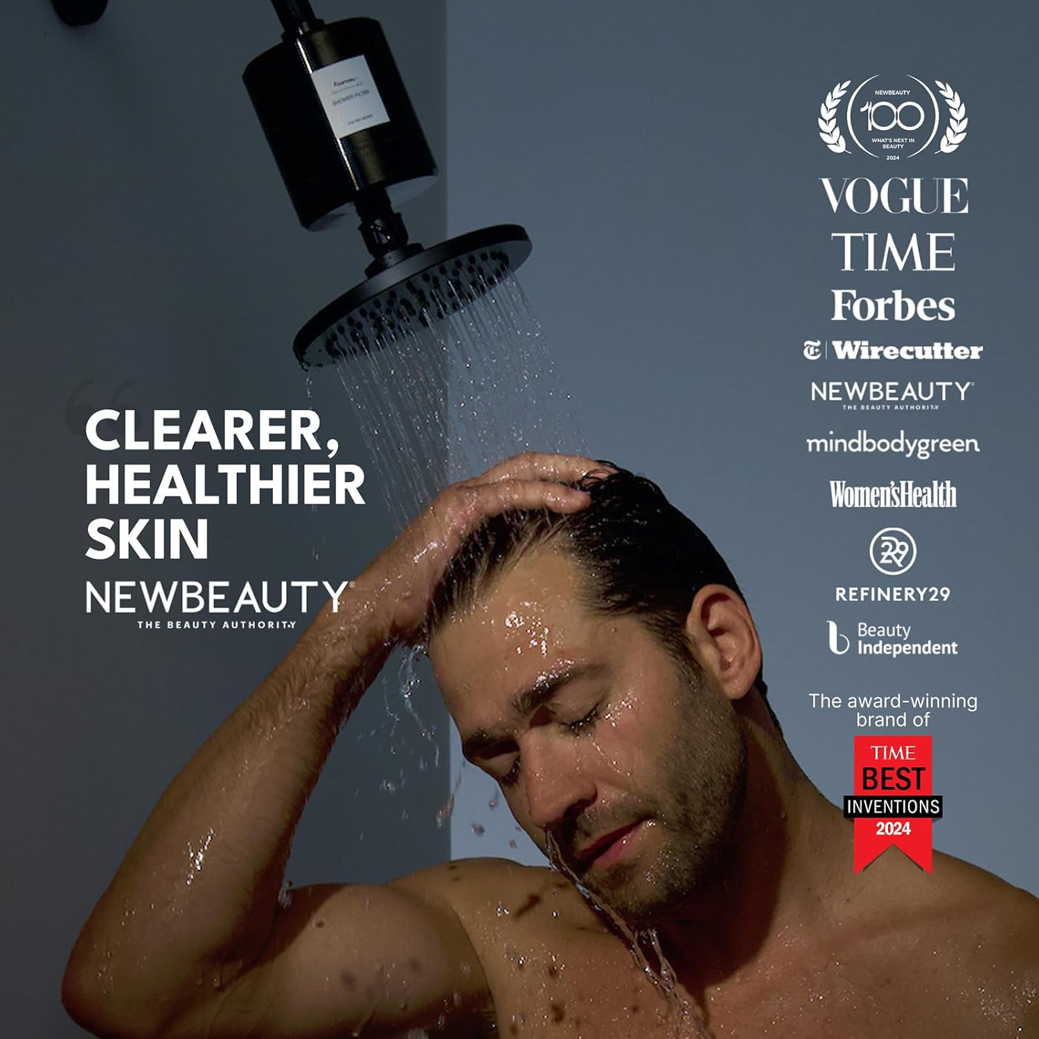 - Advanced Multi-Stage Filtration – Premium carbon filter targets over 60 contaminants found in tap water, helping protect skin, scalp & hair from dryness, irritation, and long-term water exposure.
