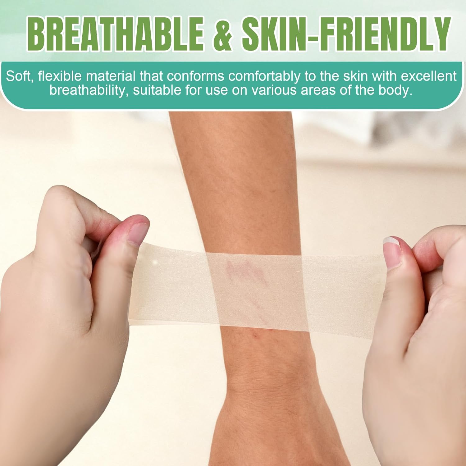 - 【Hypoallergenic and Non-irritation】This Roll Tape Patch Bandages Is Waterproof and Breathable, And Contains No Latex or Irritating Adhesives, Making It Skin-Friendly and Ideal for Sensitive Skin. These Bandages Are Ultra-Soft, And the Premium Material Seamlessly Wraps Around Your Body, Leaving You with No Redness, Swelling, Or Itching, Just Pure Comfort. They Seamlessly Fit Anywhere on Your Body, Including Your Face, Elbows, And Knees.