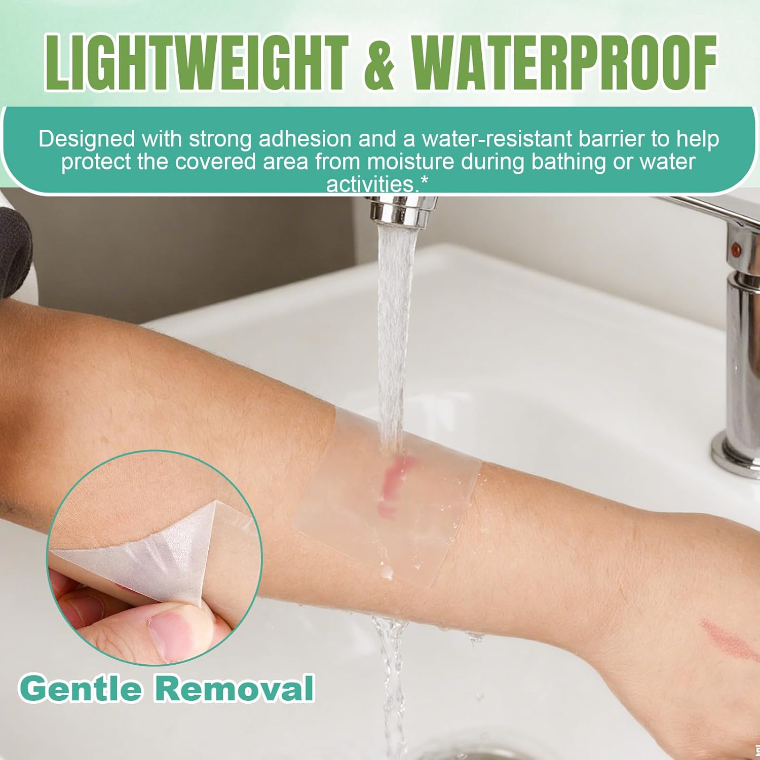 - 【Easy to Use】Waterproof first aid for wound care bandages roll won't curl after application, but peel away painlessly and smoothly without leaving any sticky residue. The non-stick wound dressing layer prevents tissue damage. They maintain flexibility even around joints without feeling tight. The translucent film allows for continuous monitoring of recovery progress. They're easy to apply to even the most delicate skin.