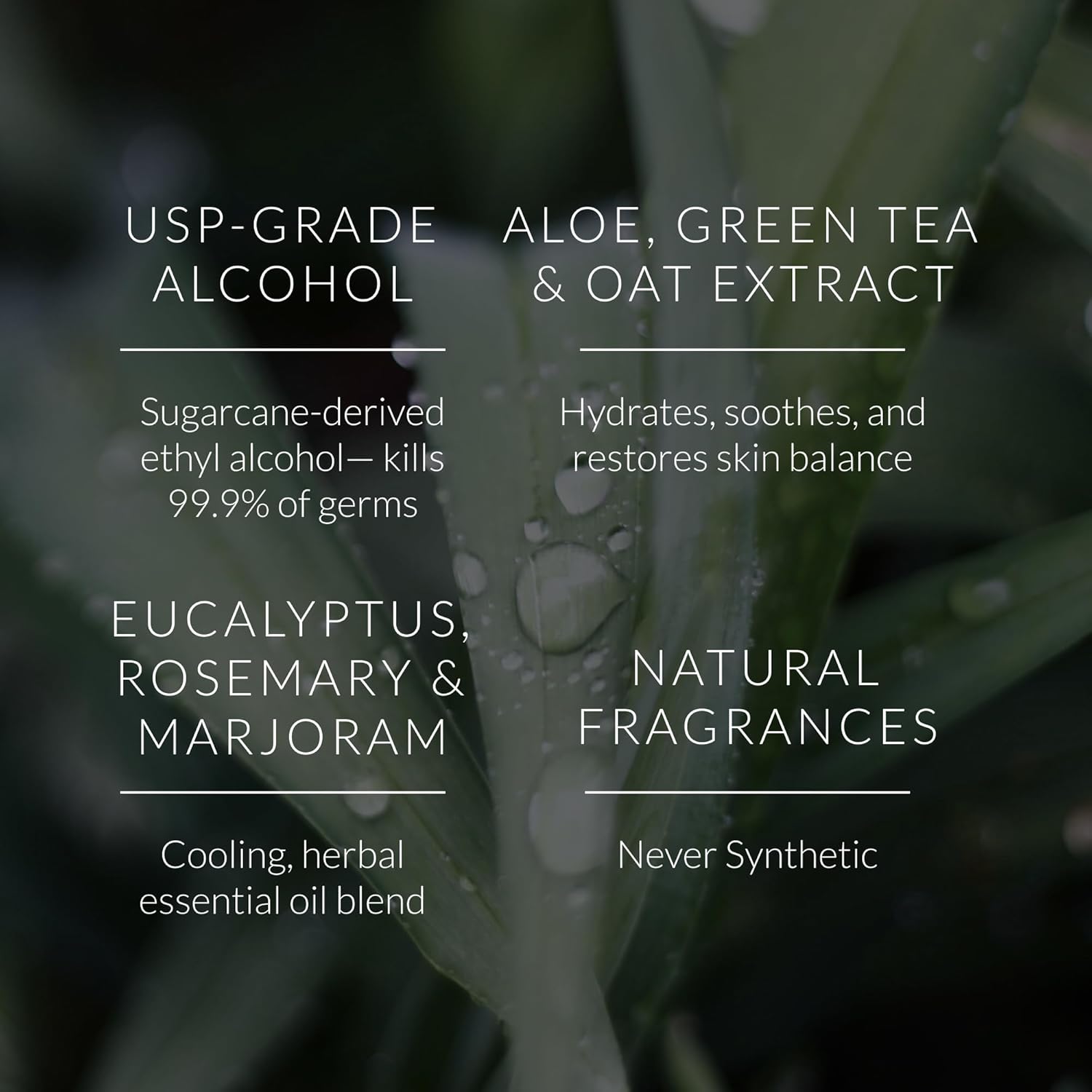 - Elevated Eucalyptus Scent – Naturally scented with essential oils of eucalyptus, rosemary, and marjoram. A cooling, herbaceous blend—never synthetic, never harsh.