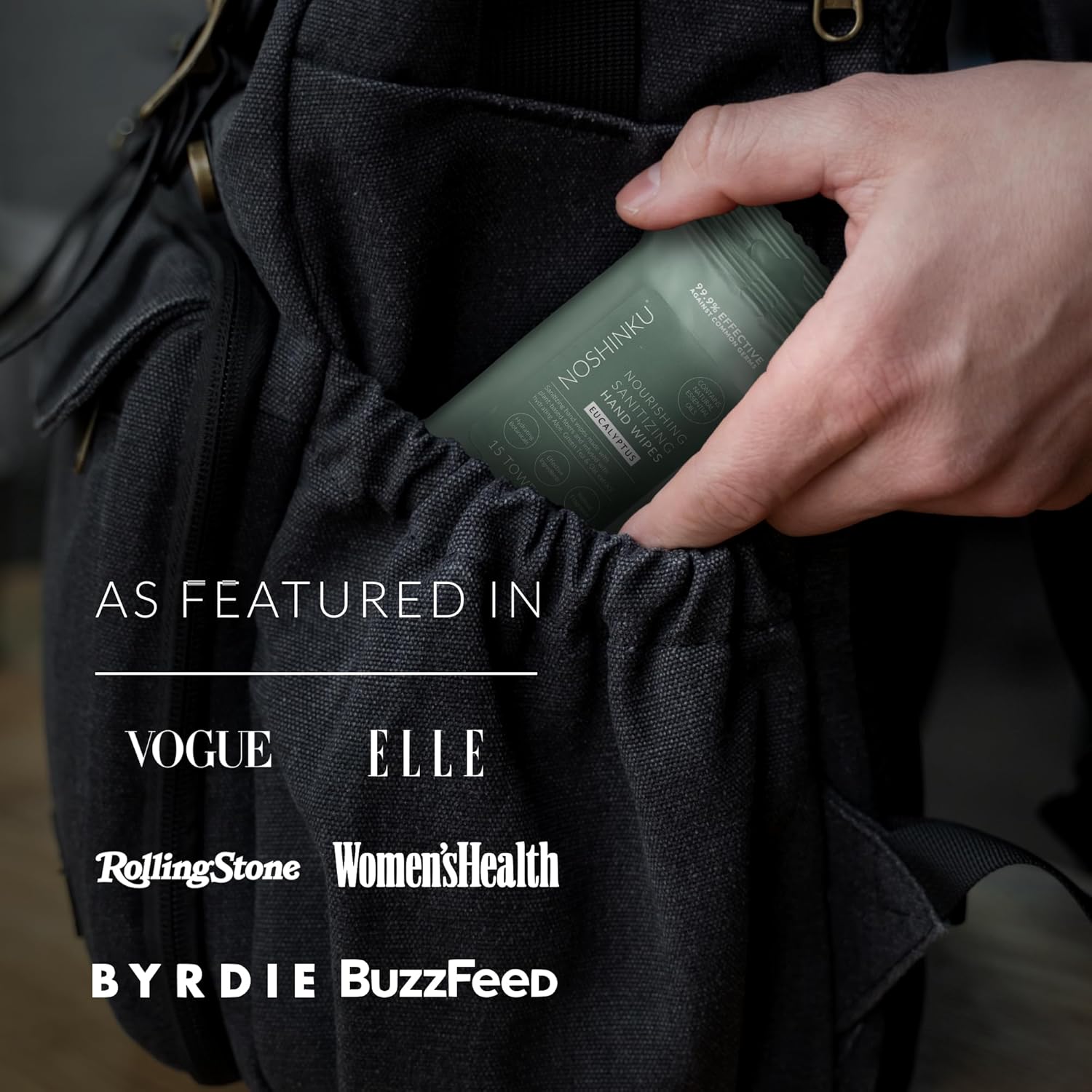 Noshinku Eucalyptus Hand Sanitizer Wipes, 6-Pack (90 Towelettes) – Resealable Travel Wipes with Ethyl Alcohol, Aloe & Green Tea, Plant-Based Fiber, Essential Oil Scents, Cruelty-Free & No Dyes