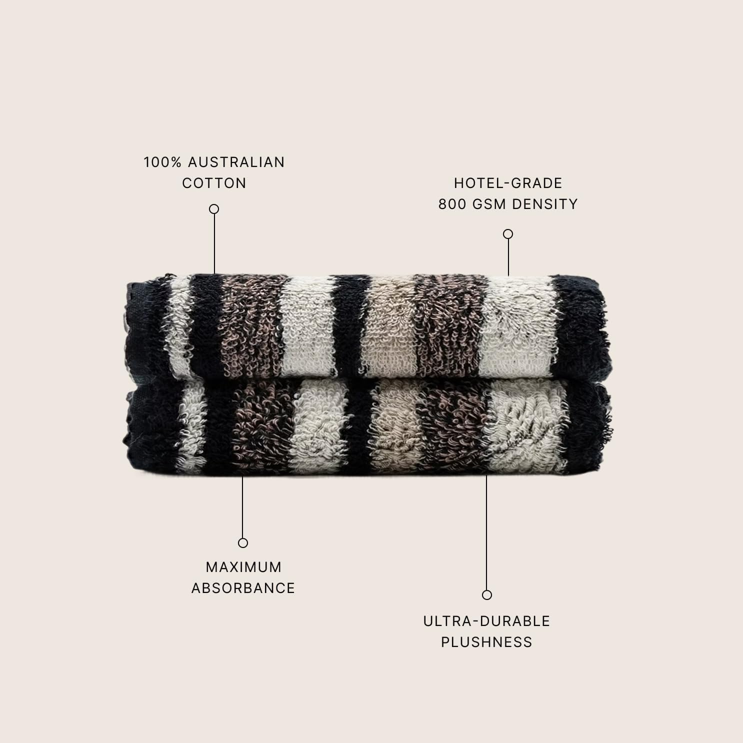 - Premium Australian Cotton for Unmatched Softness β Crafted from 100% ultra-plush Australian cotton, these towels offer an indulgent feel against your skin, ensuring a luxurious drying experience. The natural cotton fibers are breathable and absorb moisture quickly, making them perfect for daily use in the bathroom or at the spa.