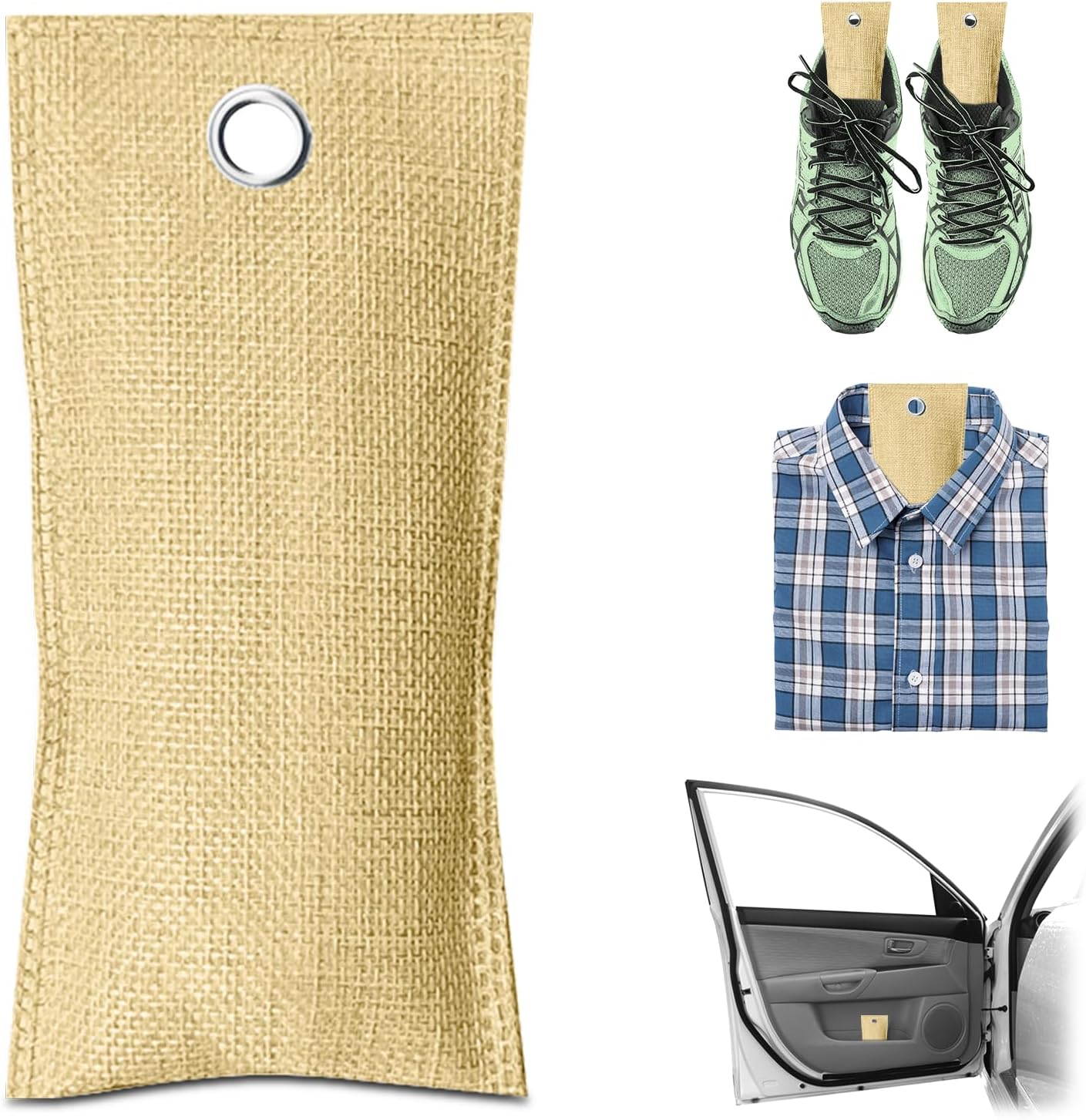 4 Pack charcoal odor absorber,Bamboo Charcoals Air Purifying Bag Charcoals Deodorizer Eliminator for Strong Odors in Car, Closet, Shoe, Basement (75G*4 Pack Beige-2, Unscented)