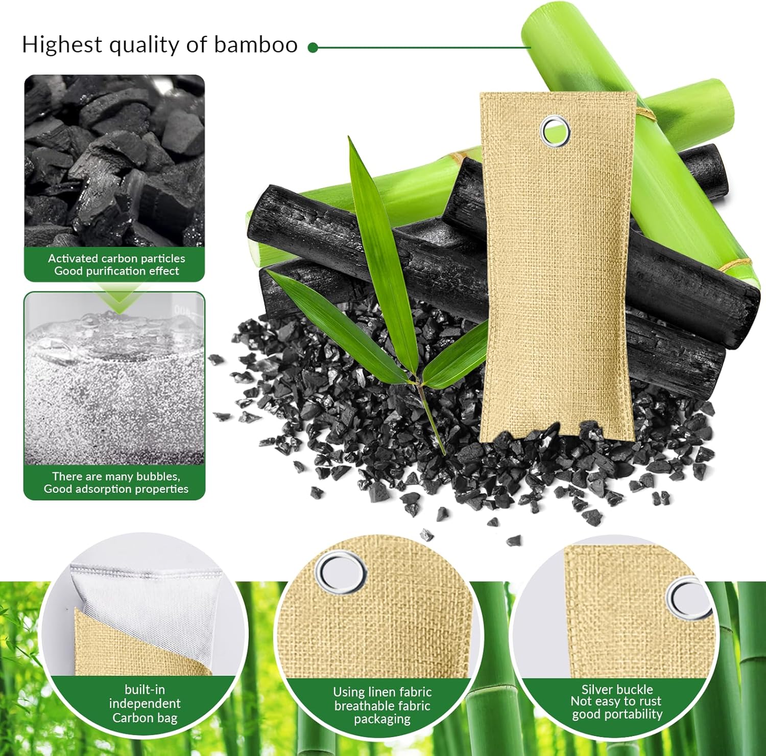 - NATURAL NON-TOXIC ODOR ELIMINATION. Our charcoal odor absorbers for home contain highly porous activated bamboo charcoal which binds to and removes bad smells.