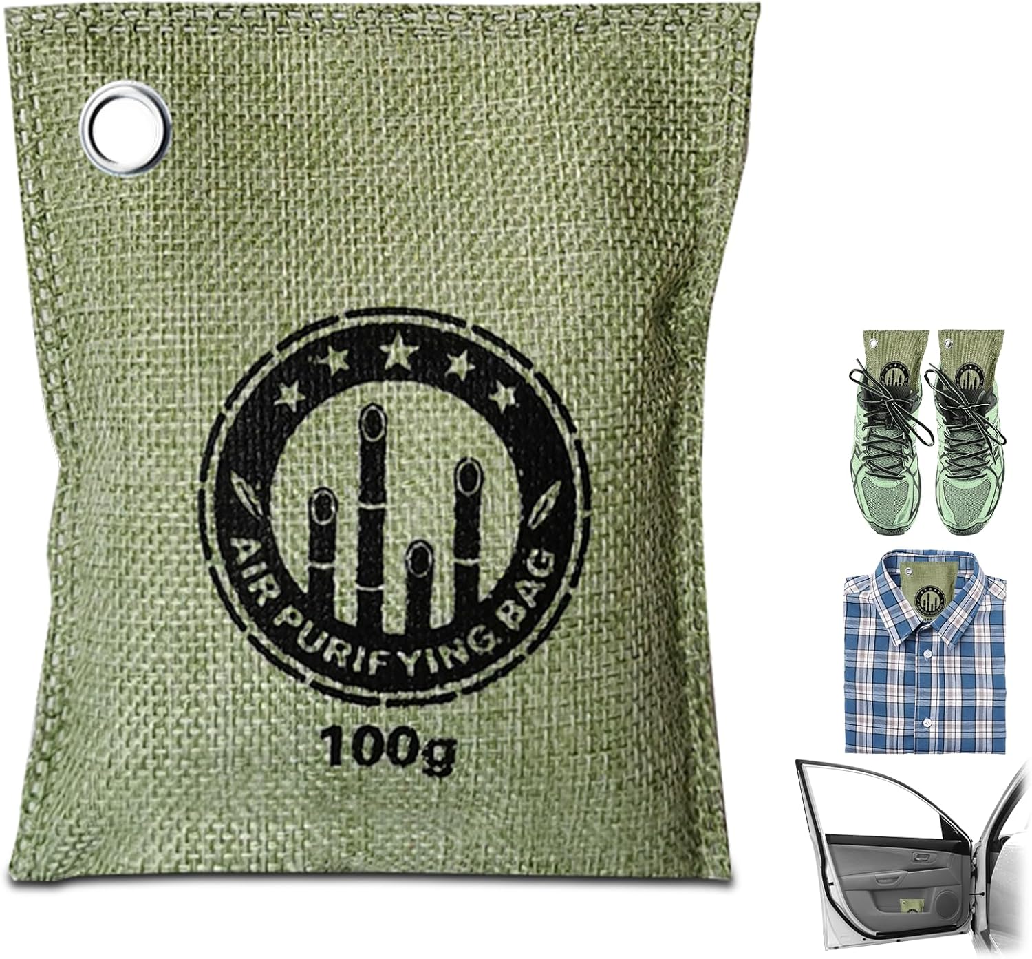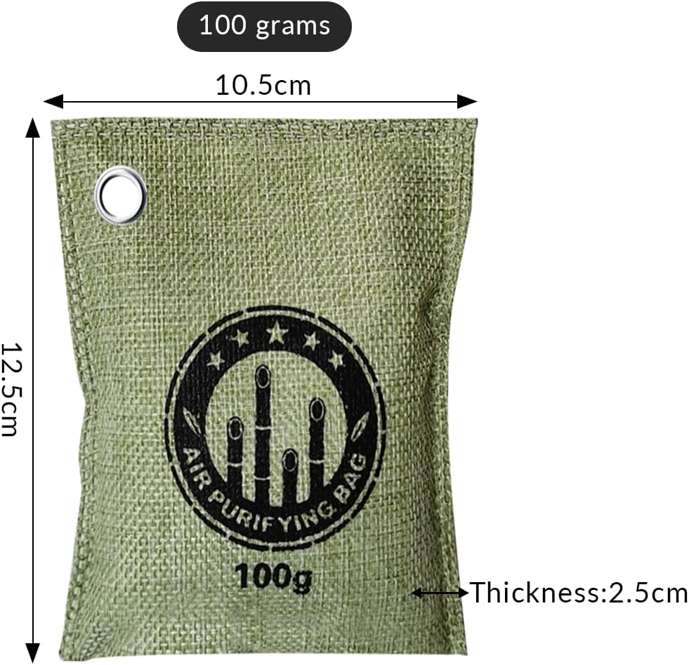4 Pack charcoal odor absorber,Bamboo Charcoals Air Purifying Bag Charcoals Deodorizer Eliminator for Strong Odors in Car, Closet, Shoe, Basement (100G*4 Pack Green, Unscented)