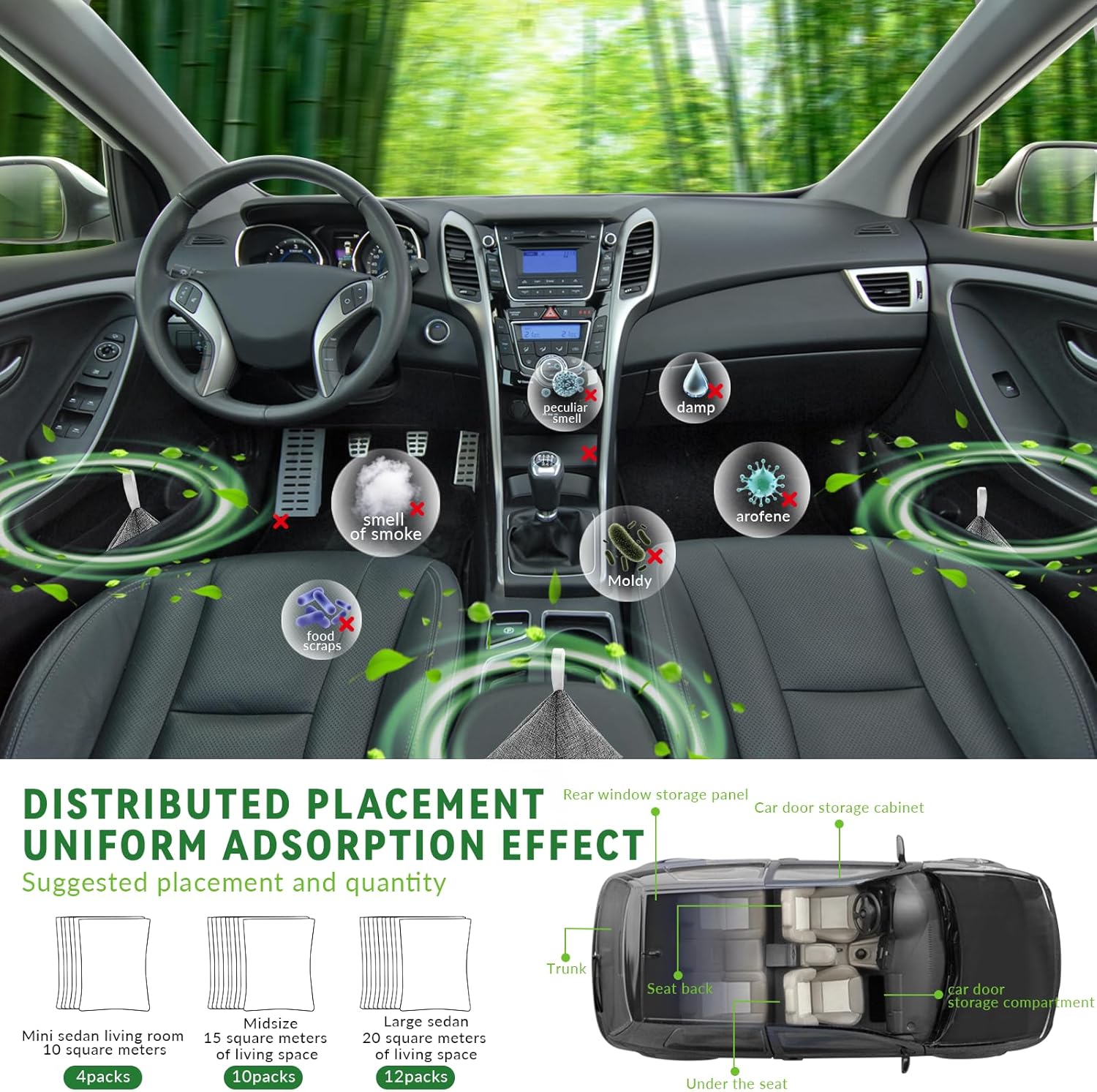 - ODOR ELIMINATOR FOR CAR. Pop a couple of our charcoal odor absorbers for car in your vehicle. After a few days these car deodorizers will have your ride smelling sweet! Use more car odor removers for bigger cars.