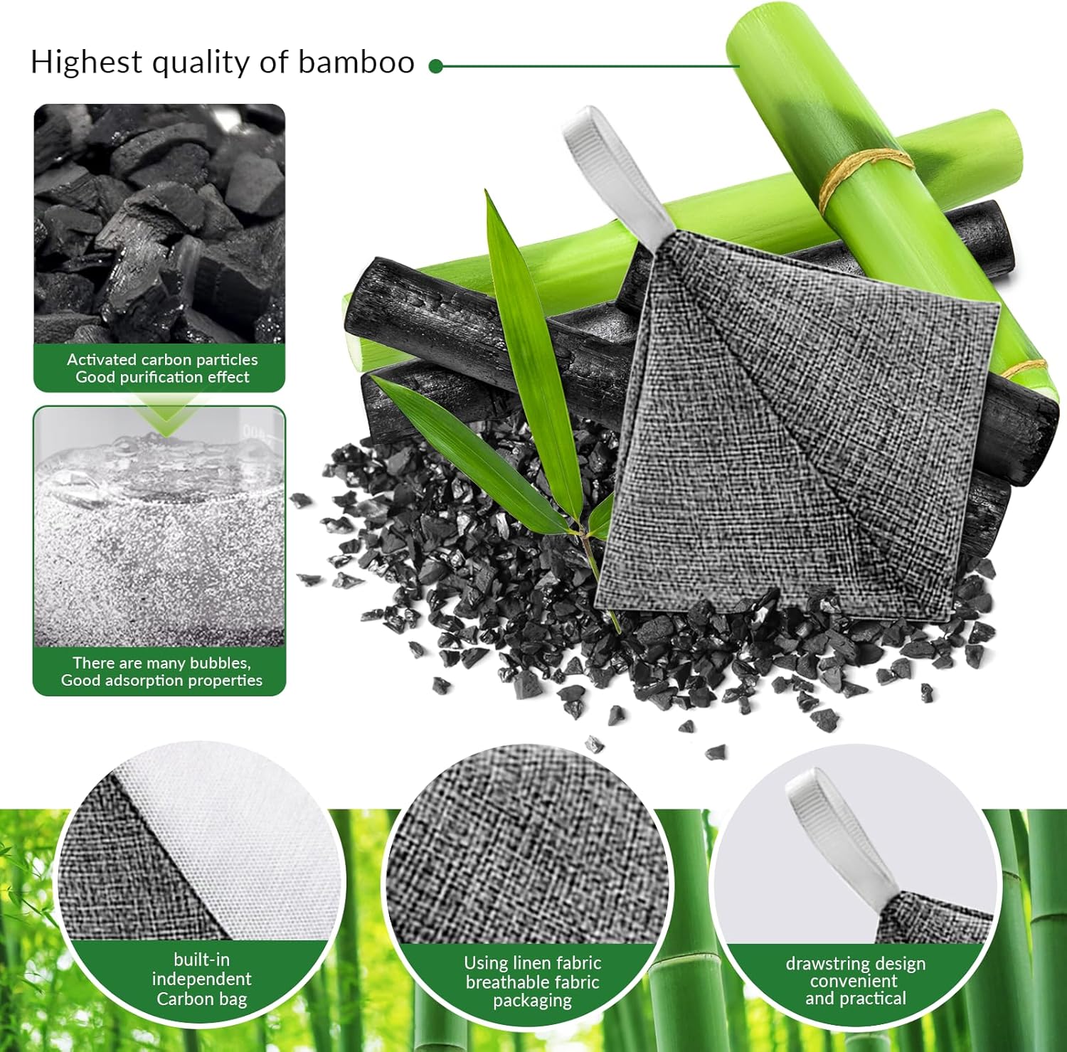 - NATURAL NON-TOXIC ODOR ELIMINATION. Our charcoal odor absorbers for home contain highly porous activated bamboo charcoal which binds to and removes bad smells.