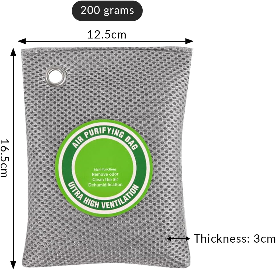 4 Pack charcoal odor absorber,Bamboo Charcoals Air Purifying Bag Charcoals Deodorizer Eliminator for Strong Odors in Car, Closet, Shoe, Basement (200G*4 Pack Gray, Unscented)