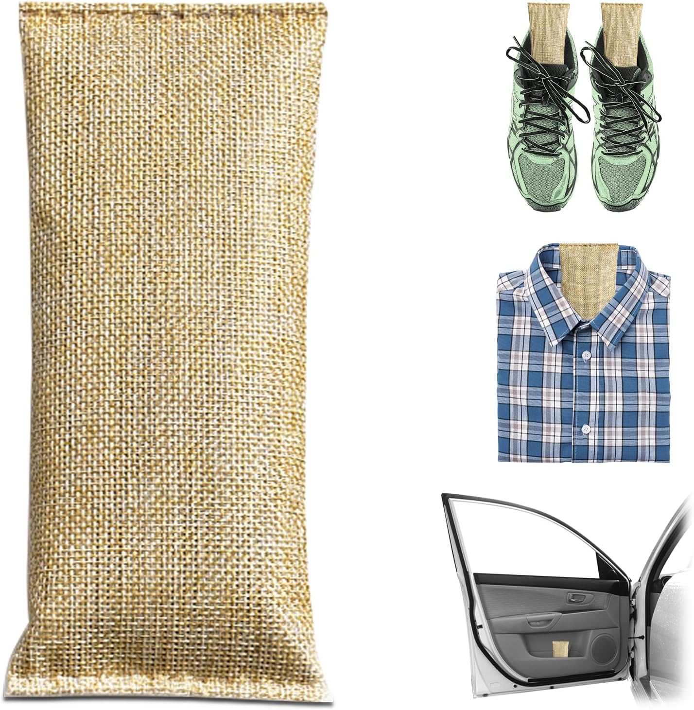 4 Pack charcoal odor absorber,Bamboo Charcoals Air Purifying Bag Charcoals Deodorizer Eliminator for Strong Odors in Car, Closet, Shoe, Basement (75G*4 Pack Beige-3, Unscented)